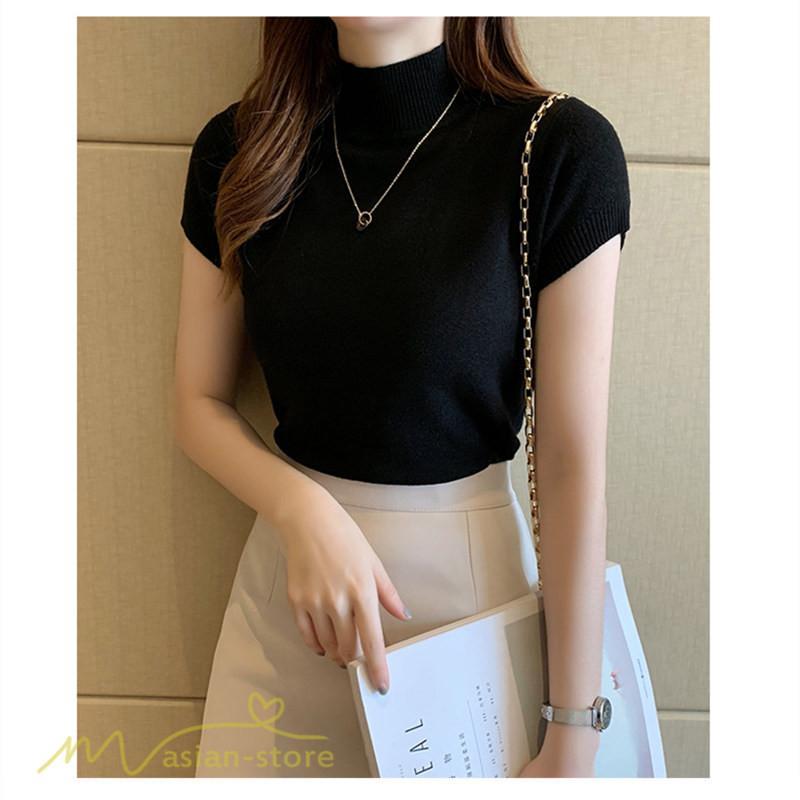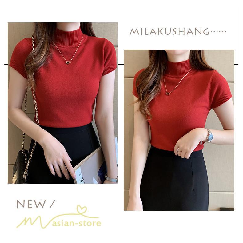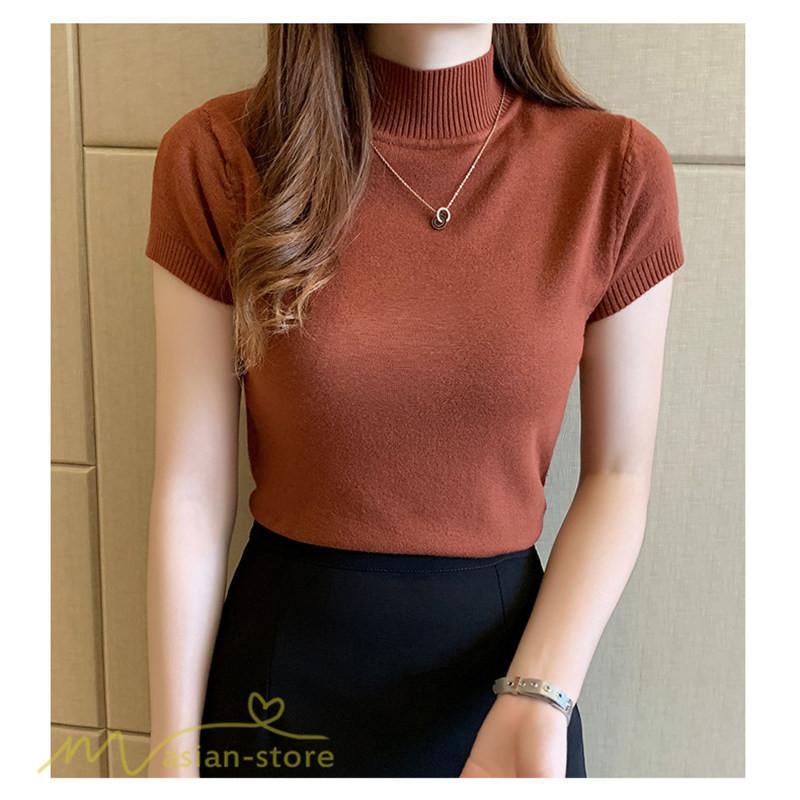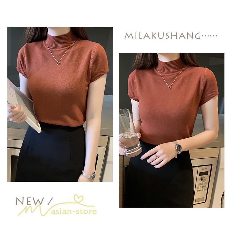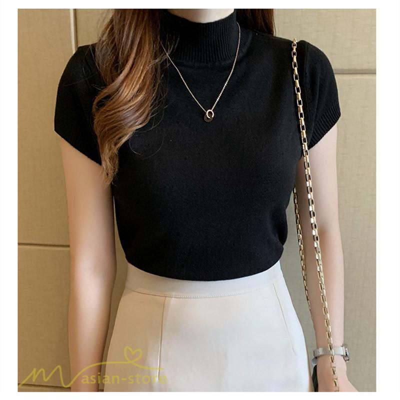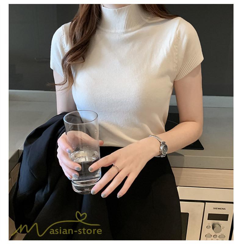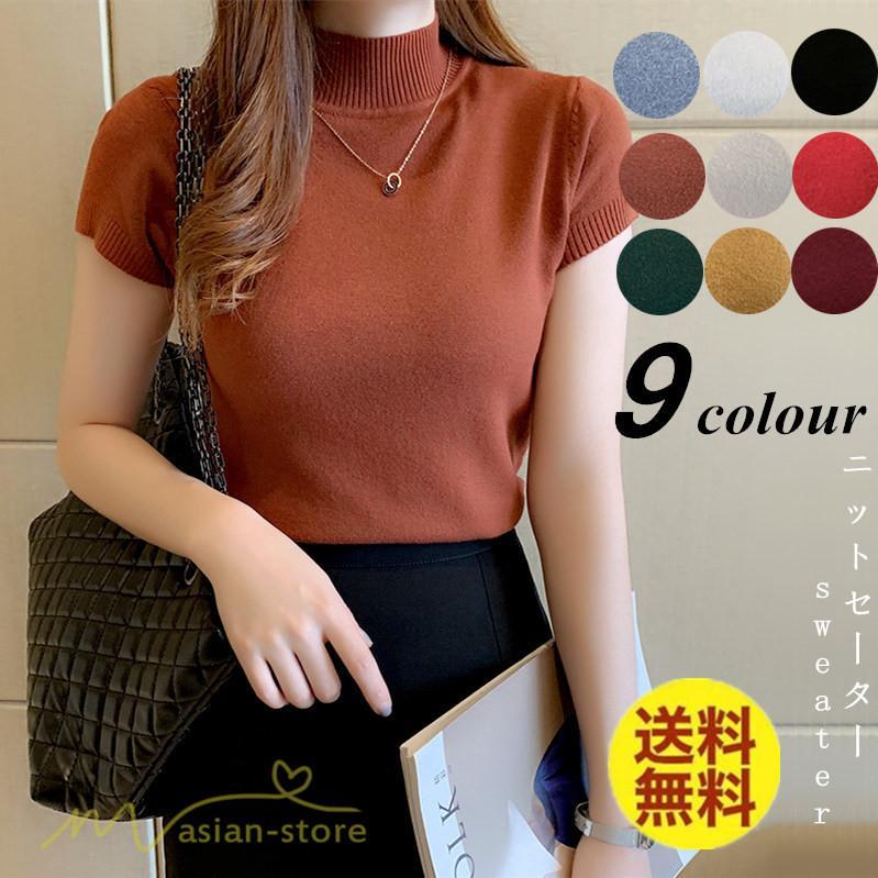 ニット レディース セーター 40代 春夏 新作 トップス 半袖 着痩せ カットソー おしゃれ 大人 韓国ファッション シンプル 上品 通勤通学