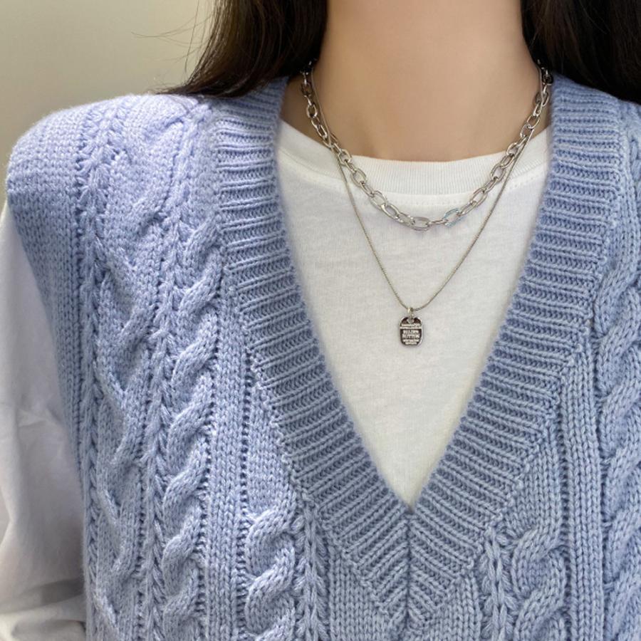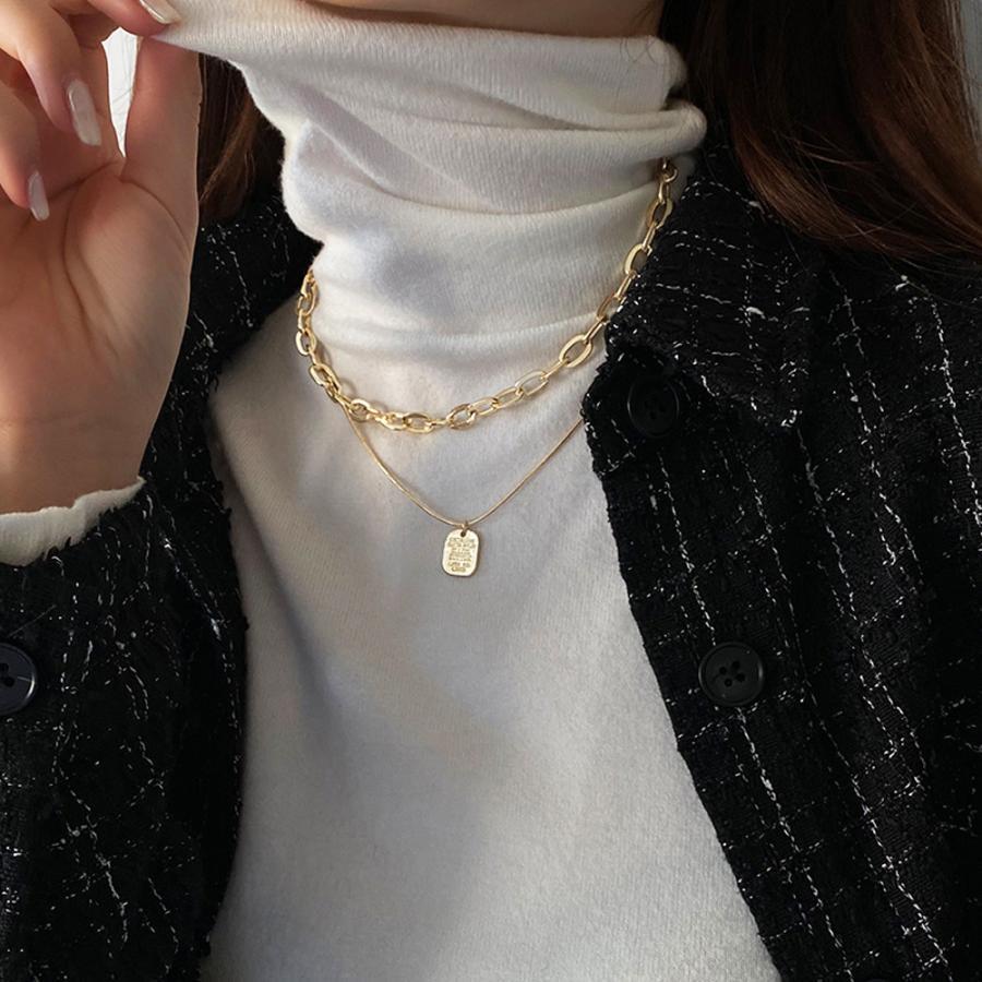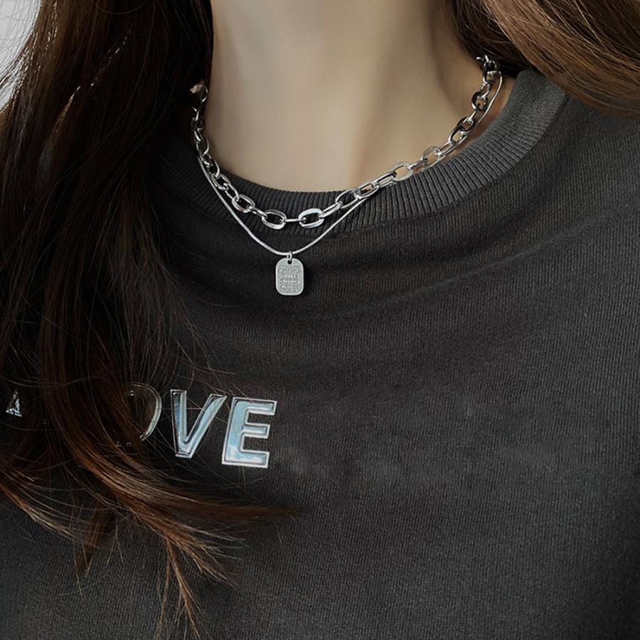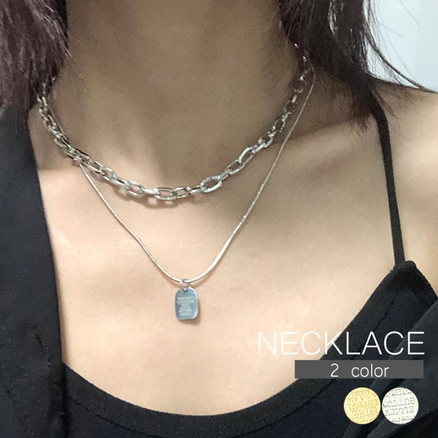 ネックレス | チョーカーチェーン ペンダント 女性 アクセサリー レディース シンプル 2連文字モチーフ 大人