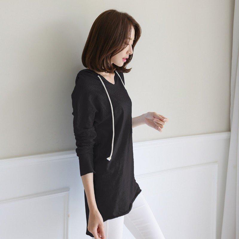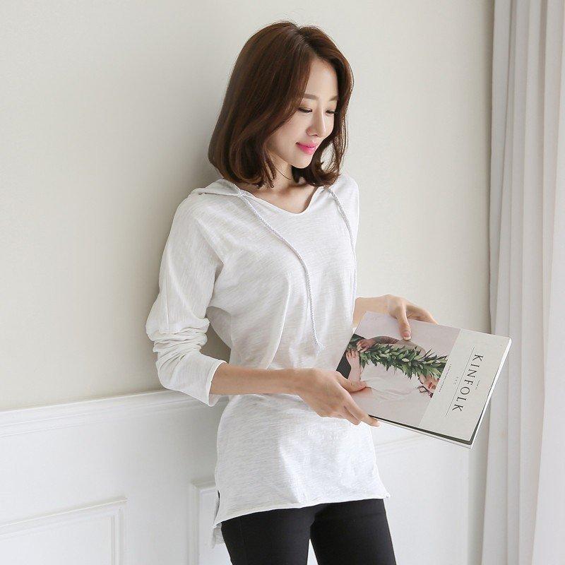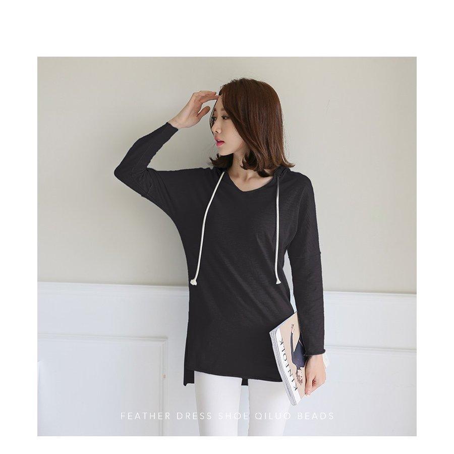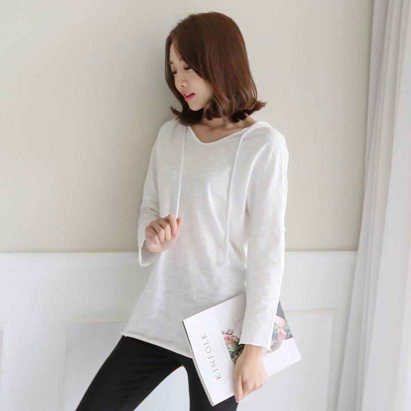 tシャツ・カットソー | Tシャツ レディース 長袖tシャツ ロンT カットソー プルオーバー ロングtシャツ ロンティー ルームウエア シンプル ゆったり 無地 フード付き 春秋