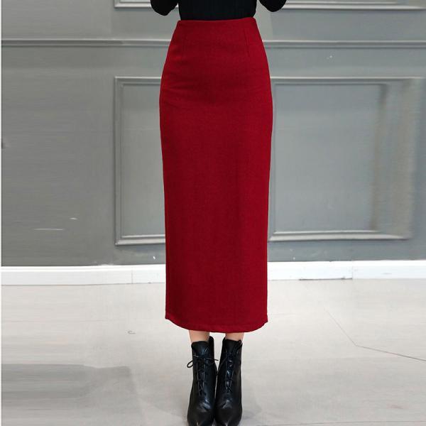 ラシャスカート スリットセクシースカート 後ろファスナー フェミニン エレガント