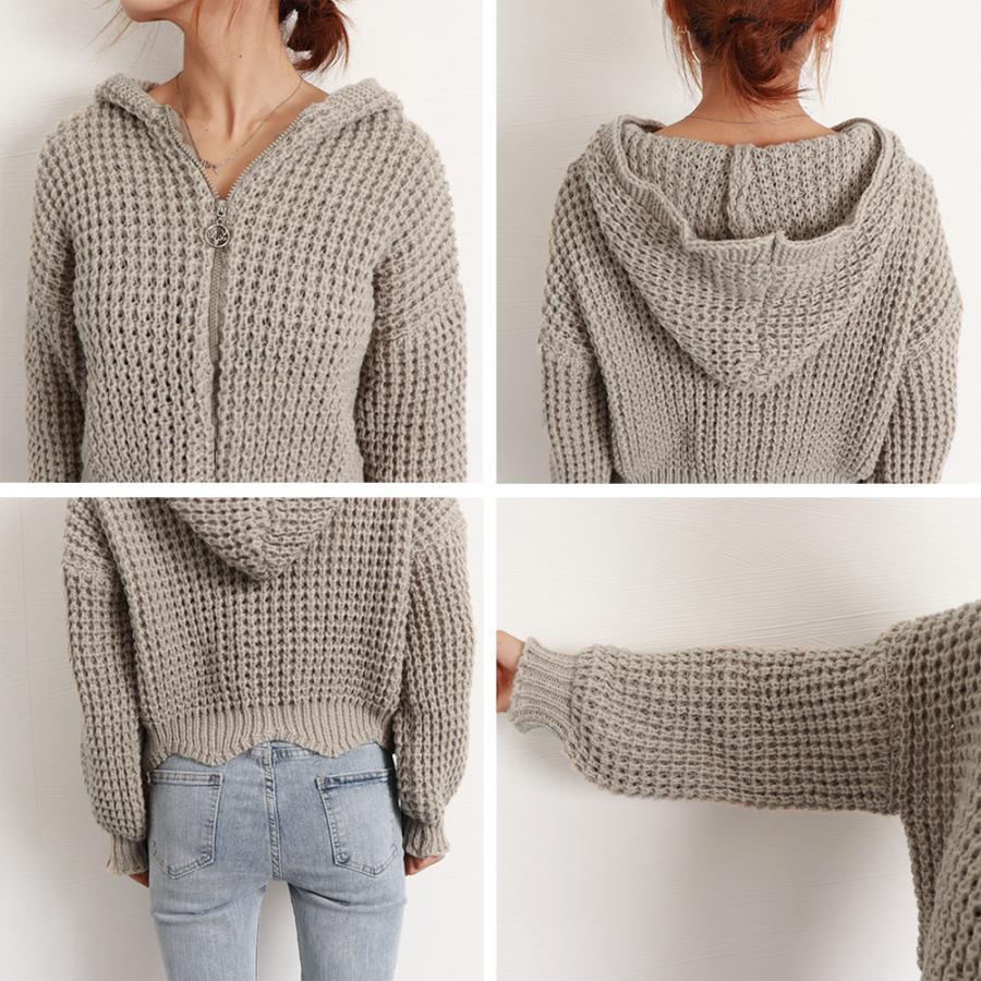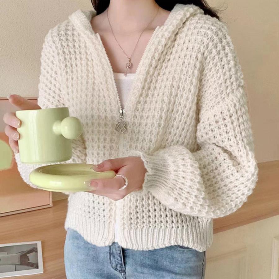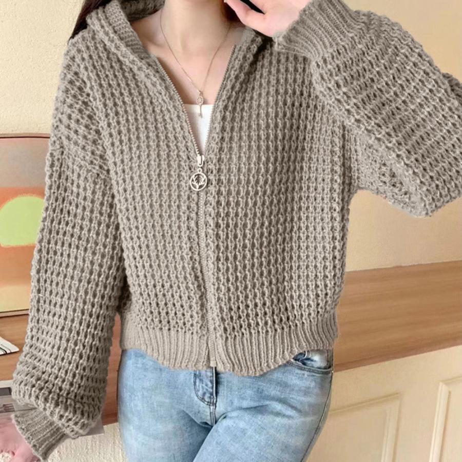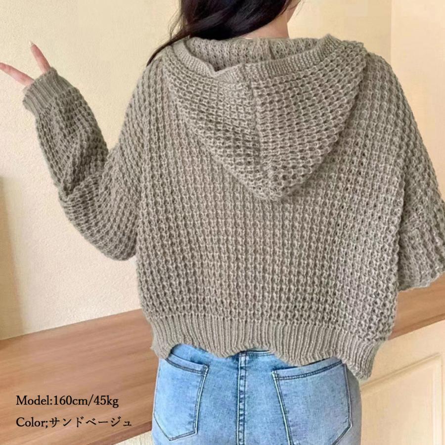 レトロニット羽織り ニットセーター大人 ニットフーディー春
