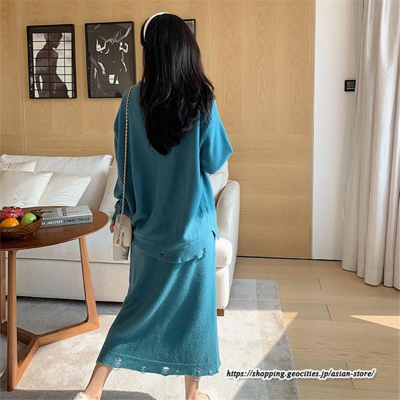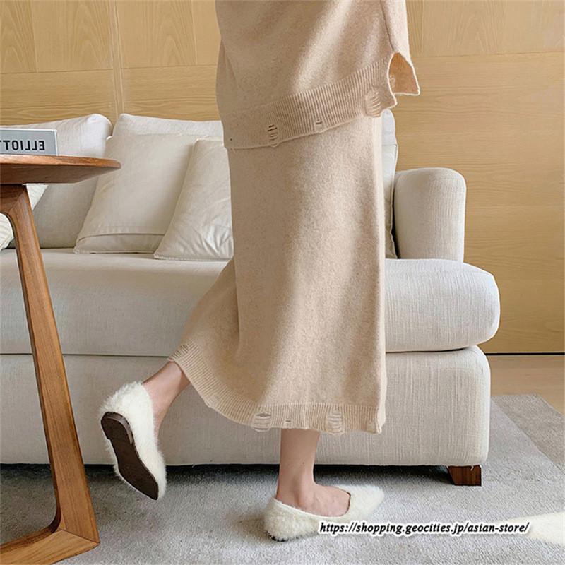 リブニット ニットトップス ニットスカート ロングスカート ミモレ丈スカート