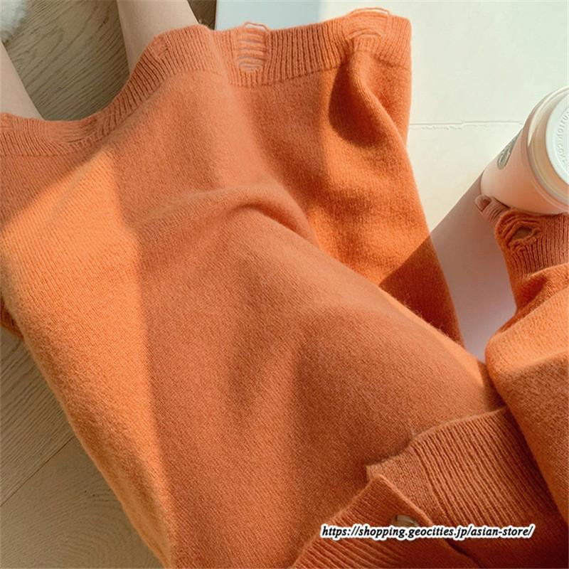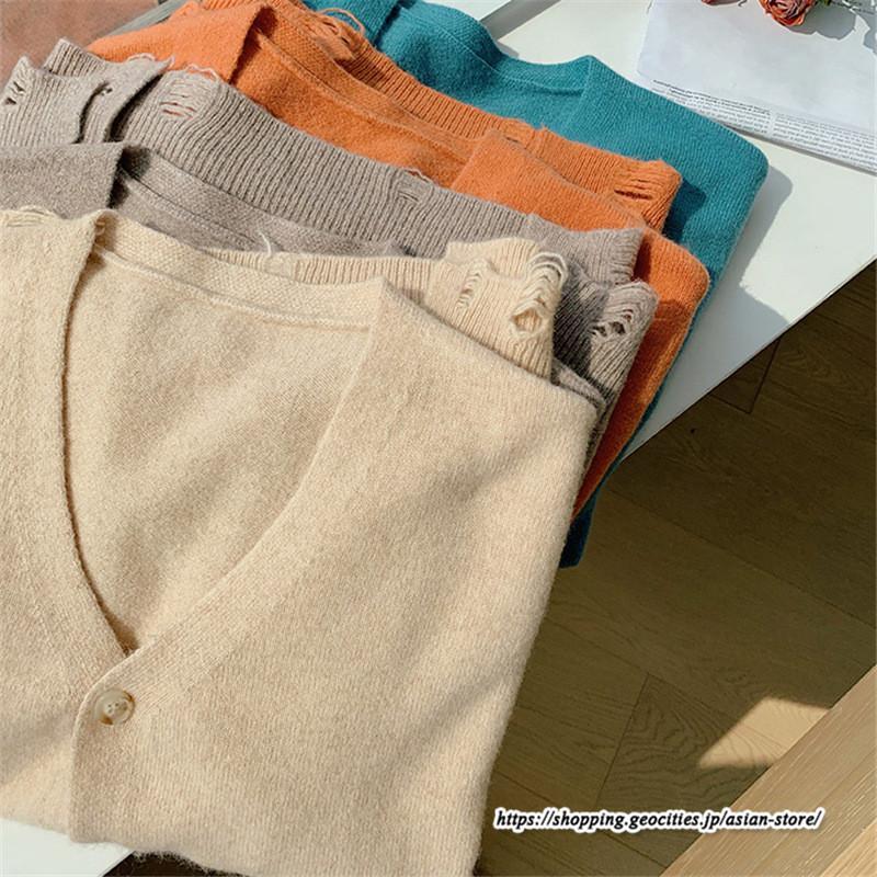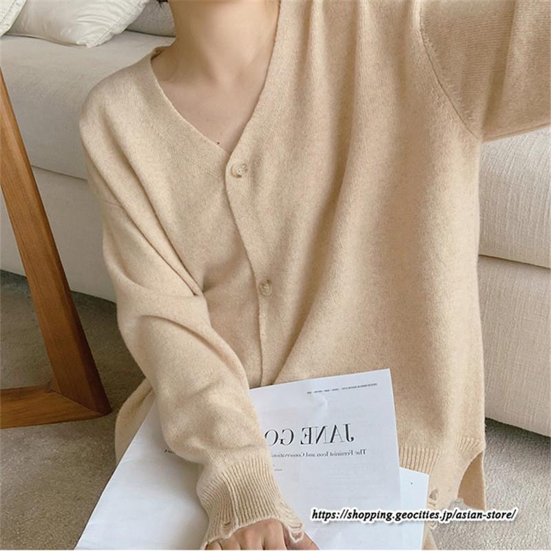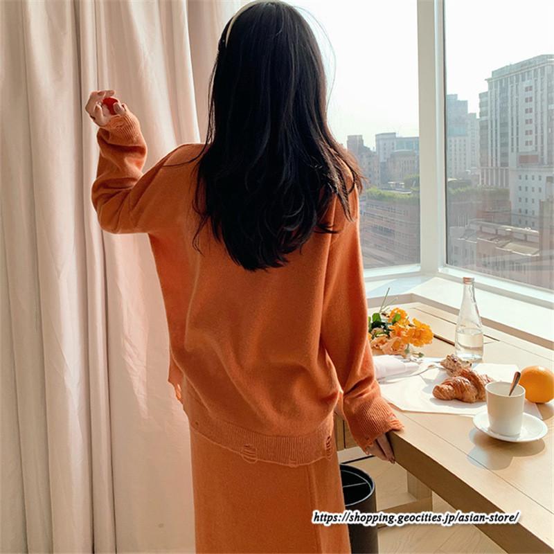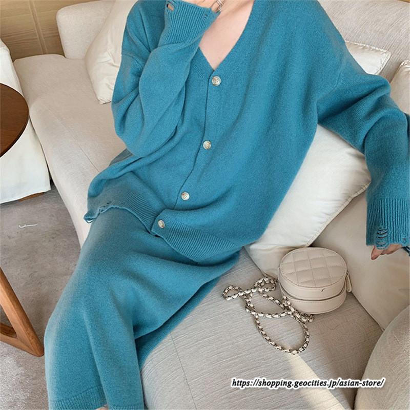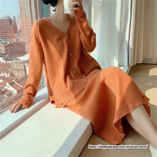 カーディガン Vネックニット トップス アウター スカート ストレートスカート ゆったり 体型カバー